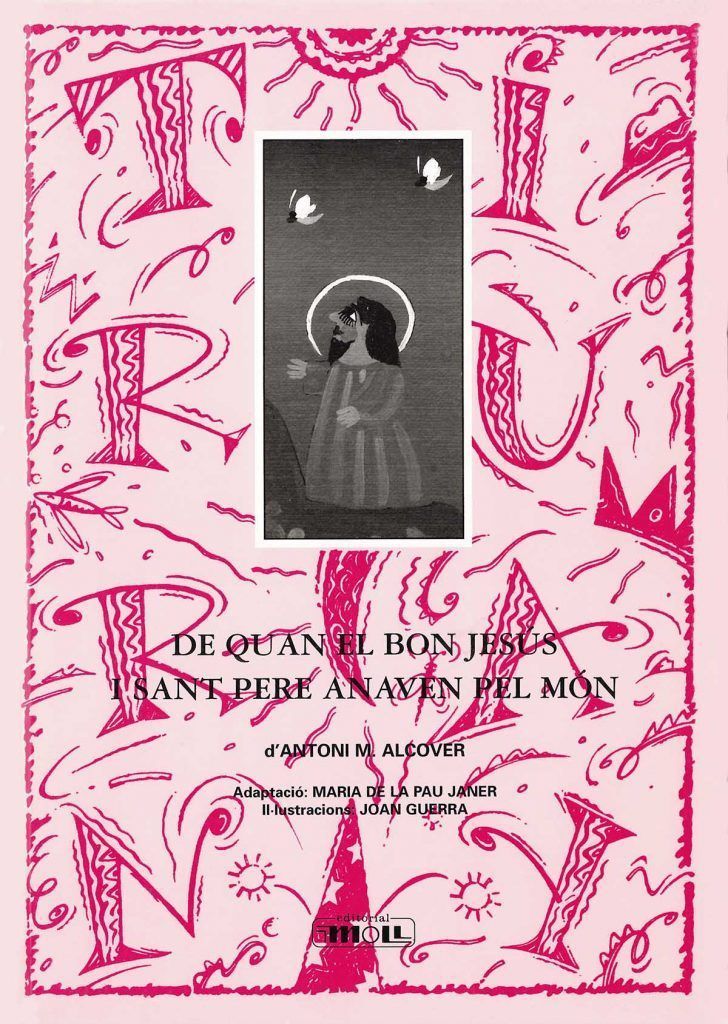 Les Rondaies Mallorquines recopilades per mossèn Alcover inclouen un conjunt de narracions breus protagonitzades pel Bon Jesús i Sant Pere, tal com passa en altres rondallaris d'arreu d'Europa. Situades en el temps que aquests personatges ‘anaven pel món', solen ser relats de to humorístic en els quals es posa de relleu la ingenuïtat i la caparrudesa de sant Pere, que contrasta amb el seny i la paciència del Bon Jesús. La narració que presentam agrupa tres relats diferents sota un títol genèric: ‘Ets aglans, ses carabasses i sant Pere‘ (vol. V), ‘Un pas que li succeí a Sant Pere amb el Bon Jesús i ets altres apòstols‘ (vol. XXI) i ‘Es pas des jeure davant i es jeure darrere‘ (vol. XIX). Maria de la Pau Janer ha lligat les tres històries que es reforcen una amb l'altra, i n'ha fet una adaptació alhora personal i respectuosa, plena de suggerències i complicitats amb el lector. En Joan Guerra, per la seva banda, ha recreat cada seqüència amb el seu estil naïf que ens fa encara més simpàtics i amables els protagonistes d'unes peripècies que -si bé no surten a cap passatge de la Bíblia- són també un petit tresor del nostre patrimoni cultural.