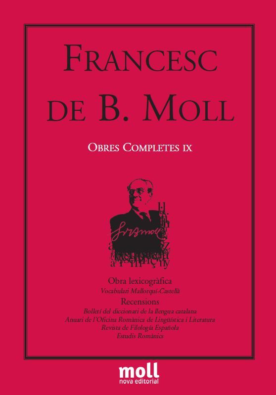 El novè volum de les Obres completes de Francesc de B. Moll conté, d'una banda, un dels treballs de l'estudiós menorquí relacionat amb la seva obra lexicogràfica i, d'una altra, un conjunt de recensions, en general breus, que veieren la llum, entre el 1923 i el 1948, en destacades revistes de lingüística i de romanística de l'època.
