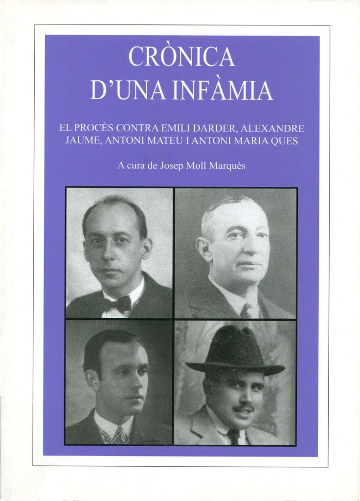 El procés contra Emili Darder, Alexandre Jaume, Antoni Mateu i Antoni Maria Ques. El 24 de febrer de 1937 es varen consumar quatre assassinats que figuren entre els més vergonyosos dels perpetrats pels feixistes espanyols en aquells anys vertaderament tràgics de la història de Mallorca. Vergonyosos no per la significació de les quatre persones assassinades, sinó pel fet que varen esser sotmeses a la farsa d'un judici en el qual els inculpats estaven condemnats per endavant. Un simulacre de judici en el qual, fent veure que es respectaven totes les garanties processals i s'evitava qualsevol situació d'indefensió dels processats, en realitat no es va fer més que emetre la sentència que ja havia estat prèviament decidida pels seus botxins. Aquesta és la convicció que s'imposa llegint la documentació d'aquell judici, que ara ha pogut esser consultada i publicada.